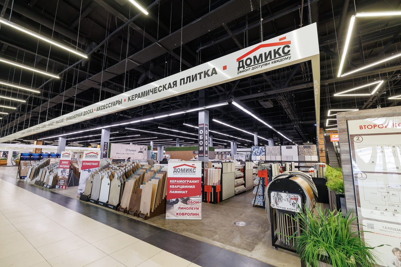 Домикс - федеральная сеть магазинов Домикс начала свою историю в 2015 году, когда был открыт первый розничный магазин. На данный момент работает уже более 20-ти магазинов Домикс, где можно приобрести: ламинат, паркетную доску, ковры и ковролин, керамическую плитку, Обои, пенополиуретан, линолеум и комплектующие к ним.